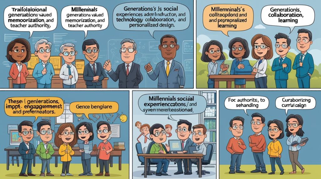 Furthermore, Generation X favored problem-based learning and real-world relevance. According to Knowles’ (1984) theory of andragogy, adult learners prefer autonomy and experiential learning, principles that aligned closely with Gen X preferences. Consequently, educators began incorporating case studies, group work, and applied projects. Additionally, Gen X teachers promoted balance between work and personal life, influencing educational policy and faculty culture. However, their skepticism toward institutions sometimes resulted in disengagement from rigid academic systems. Nevertheless, Gen X played a crucial role in bridging traditional and digital education, preparing the ground for future technological integration.